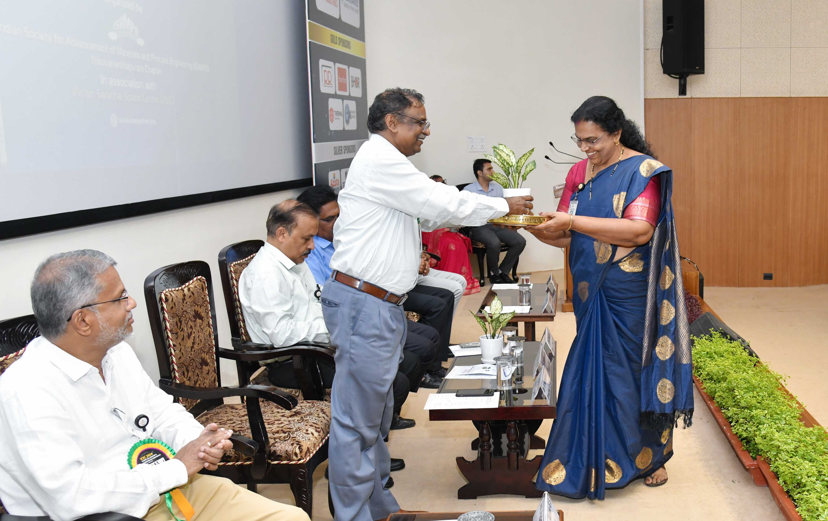 Other dignitaries in the inauguration event includes Shri Sunil P, Deputy Director, CMSE and chairman of the Organizing Committee, Dr L. Mohan Kumar, Chairman of ISAMPE Thiruvananthapuram Chapter, and Dr Aravind Jithin A J, Convenor of the Organizing Committee.