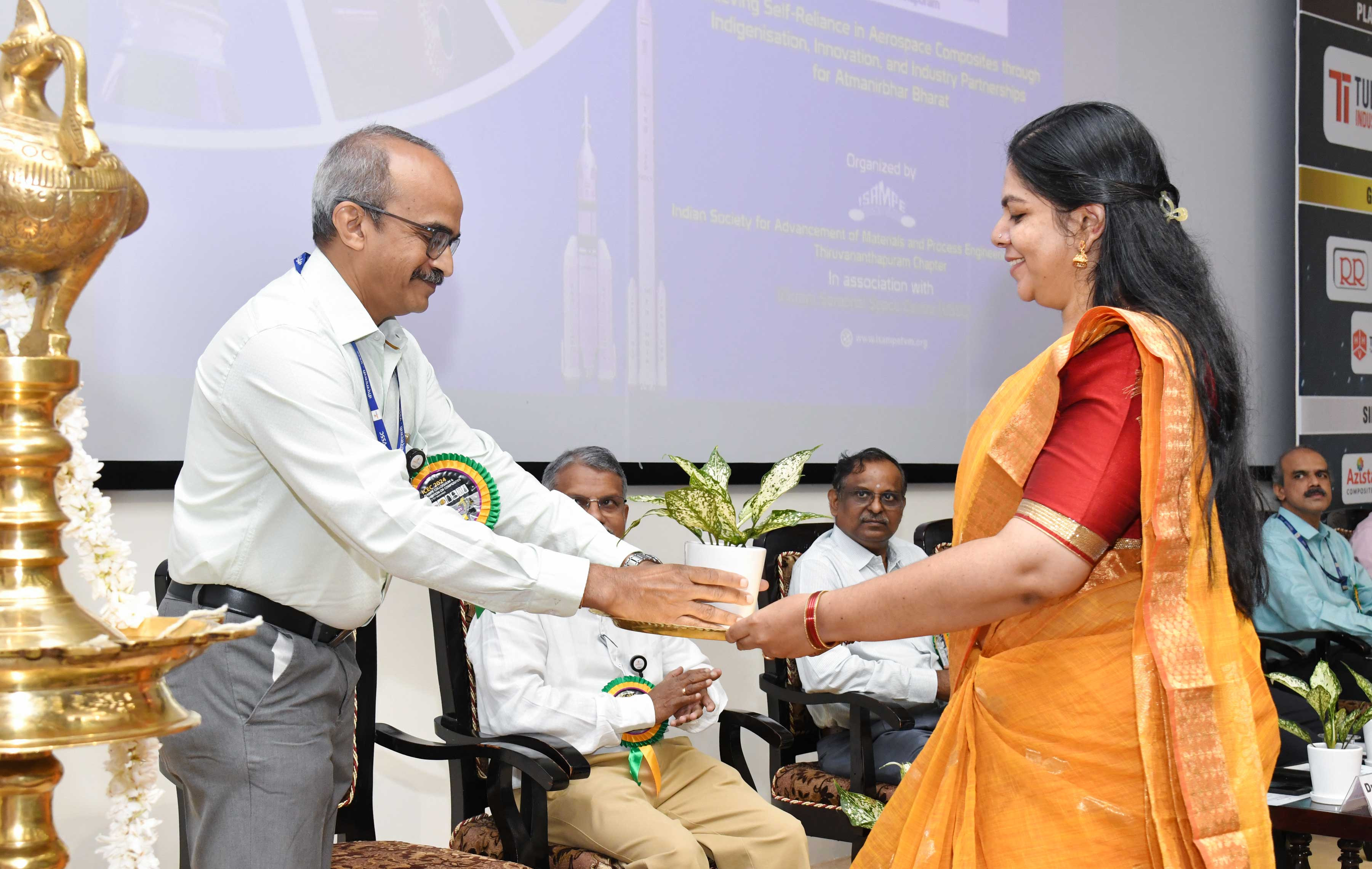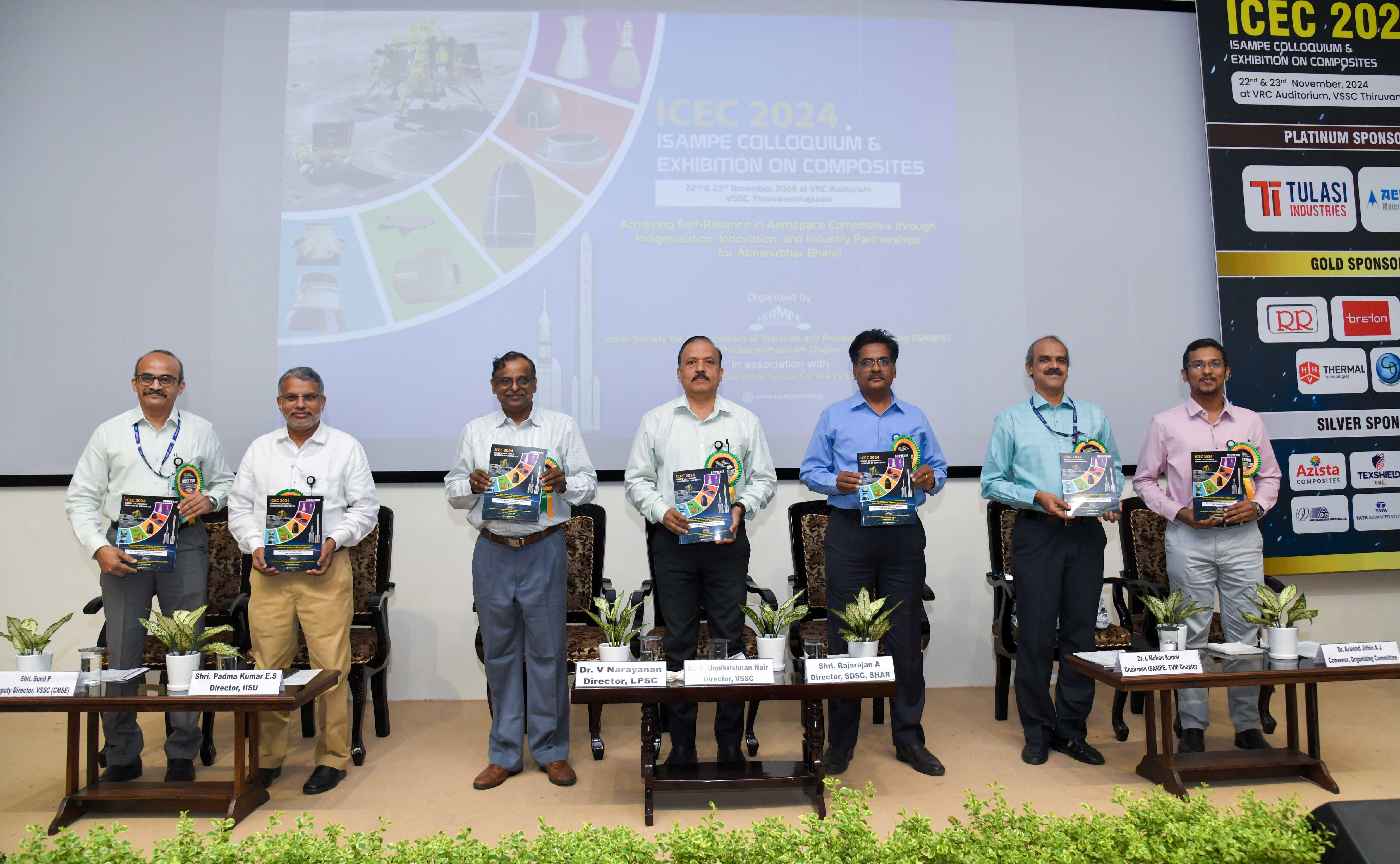 The program was inaugurated by Dr. S. Unnikrishnan Nair, Director, VSSC, with the souvenir being released by Dr. V. Narayanan, Director, LPSC. Shri Padma Kumar E.S., Director, IISU, inaugurated the exhibition, which showcased cutting-edge developments in composite technology. The plenary address was delivered by Shri. Rajarajan A, Director, SDSC, SHAR & President, ISAMPE (India).